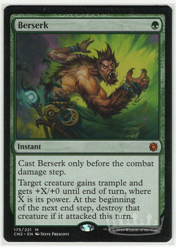 Detailed Notes: this cards has minimal surface/edge wear. This product is a listing for a rare crimped misprinted Berserk, from Conspiracy: Take the Crown.