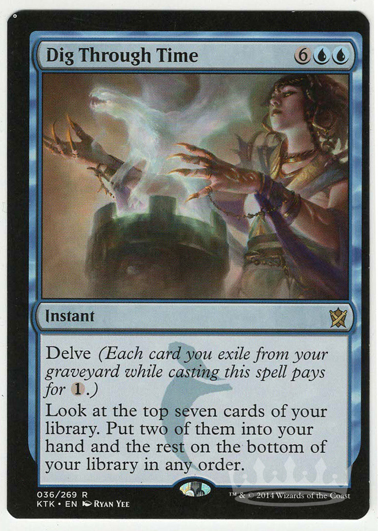Detailed Notes: this cards has minimal surface/edge wear. This product is a listing for a very rare factory miscut misprinted Dig Through Time, from Khans of Tarkir.